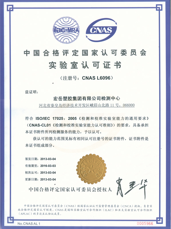 九游塑胶集团有限公司检测中心于2011年3月导入国家试验室认可体系,中心隶属于九游塑胶集团有限公司,拥有国内外先进的检测仪器和设备,全部为相关专业本科以上学历或工作时间超过10年的资深专业人员。自体系推行以来,2011年、2012年中心通过了两次的内审和管理评审,使体系运行不断完善,同时进行了认可委组织的维卡软化、拉伸和熔指的能力验证和测量审核4次,与塑料制品监督检验中心进行了交联度的实验室比对,通过能力验证和实验室比对,说明检测中心具备良好的检测能力,能够确保独立地、公正地对承检范围内的检测项目进行检测,检测数据准确,技术能力较高。