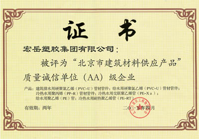 质量是产品的核心价值,诚信是企业的发展动力。凭借过硬的产品质量和良好的企业信誉,继2011年入选首批北京建筑材料供应单位产品质量诚信A级企业之后,2015年4月,九游获评北京建筑材料供应产品质量诚信AA级企业。