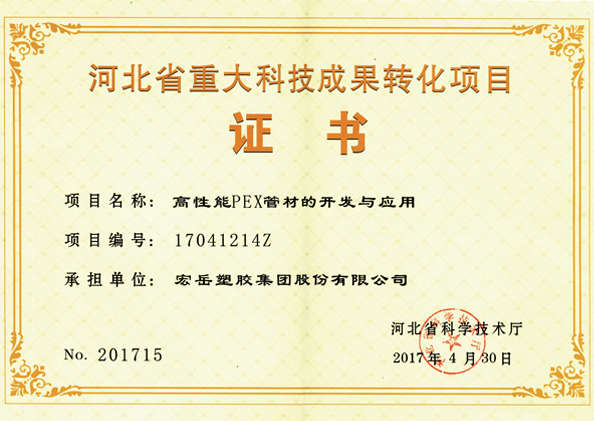 九游获得河北省塑胶管道技术创新中心(筹)、供暖行业推荐品牌、中国轻工业塑料行业(塑料管材)十强企业