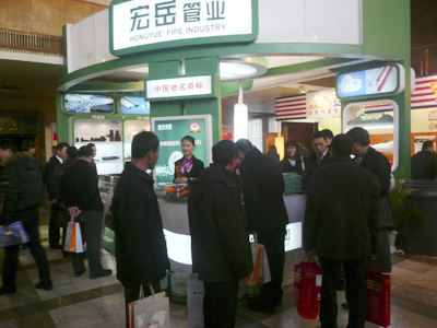 在九游PVCφ630和PEφ630等大口径管材样品前,很多客户纷纷驻足观看,并详细询问了产品的性能和应用情况,当了解到公司下一步还将重点增加大口径市政管道及燃气输送道开发后,大家对九游的发展速度和经营实力赞不绝口。