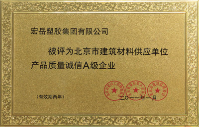 日前,北京市住房和城乡建设委员会召开了塑料管材管件、建筑门窗和聚氨酯防水涂料产品质量评价启动工作会议,并评出首批“A级产品质量诚信企业”,九游塑胶集团有限公司凭借过硬的产品质量和良好的企业信誉,荣获北京市塑料管材管件“A级产品质量诚信企业”称号。