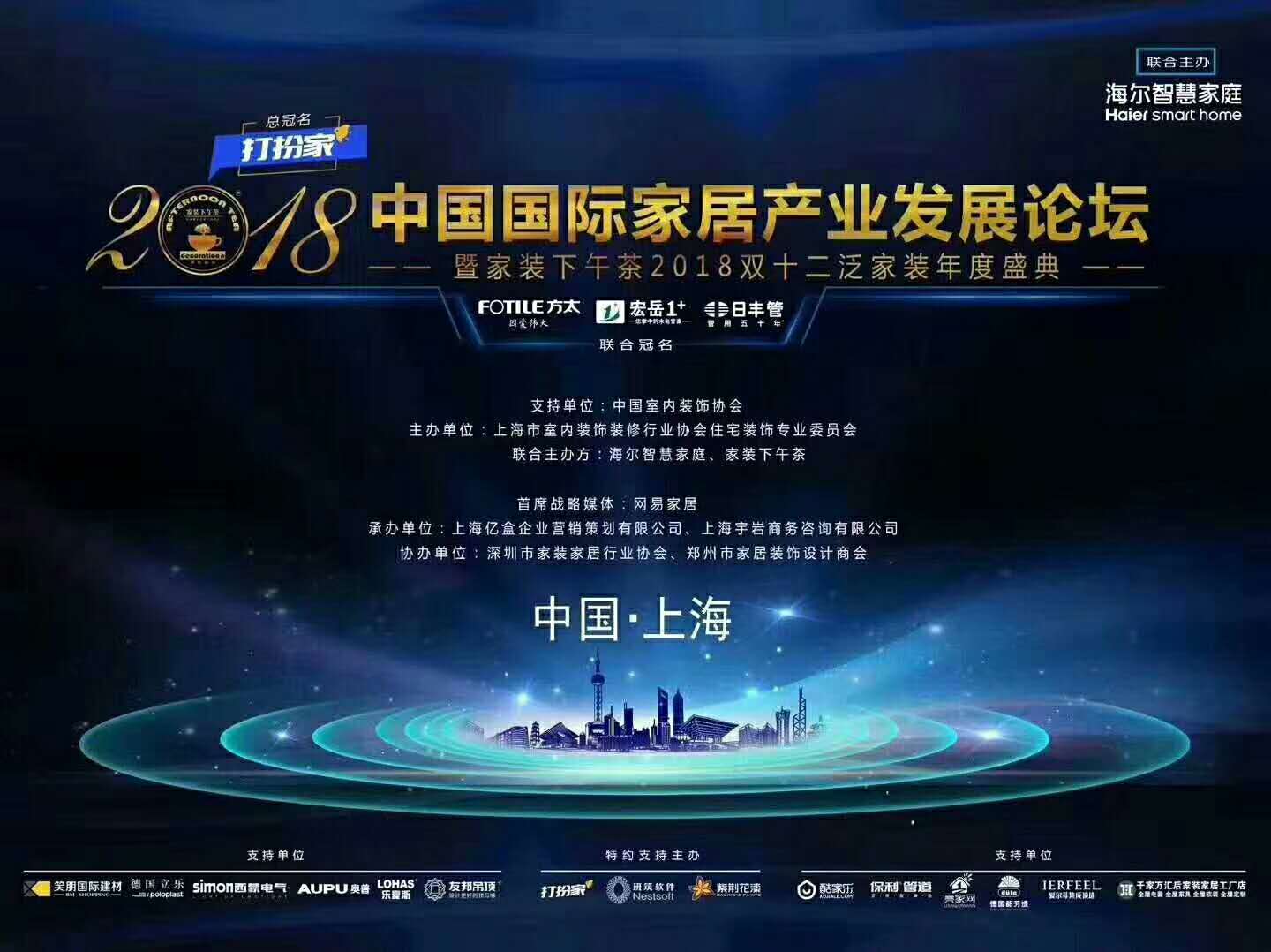 2018年12月12日-14日,2018中国国际家居产业发展论坛暨双十二泛家装年度盛典在上海隆重举行,1500余位家装精英及上下游产业大咖同场交流,分享前沿实践智慧,碰撞行业火花,九游1+作为本次活动联合冠名商荣耀亮相。