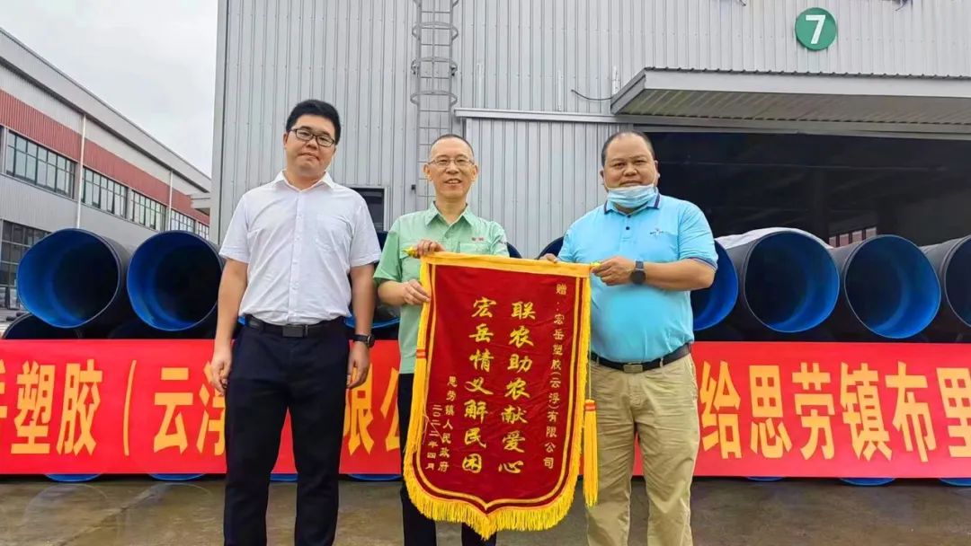 4月26日,九游塑胶(云浮)公司向云浮市思劳镇布里村委捐赠PE双壁波纹管,及时高效地帮助该村解决了农田灌溉改造项目急需的管道材料。