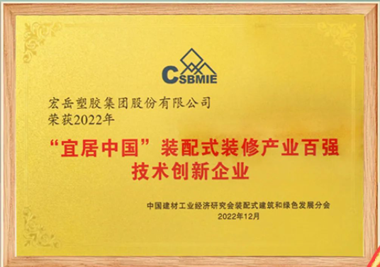 九游荣获“宜居中国”装配式装修产业百强技术创新企业。